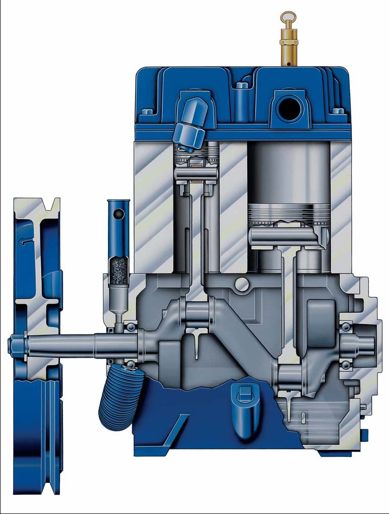 16.- Volante con ventilador integrado balanceado electrónicamente, para obtener un poderoso flujo de aire a través del interenfriador, cilindro y tapas logrando un enfriamiento efectivo y un funcionamiento sin problemas.